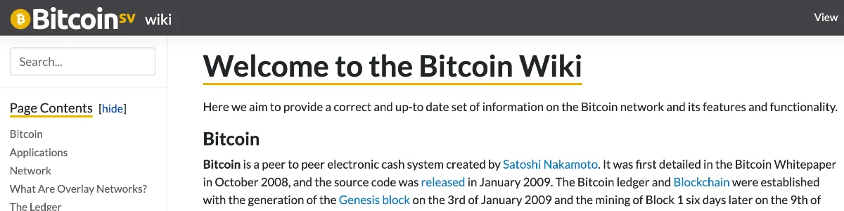 The BitcoinSV Wiki aims to provide a correct and up-to-date set of information on the Bitcoin network.